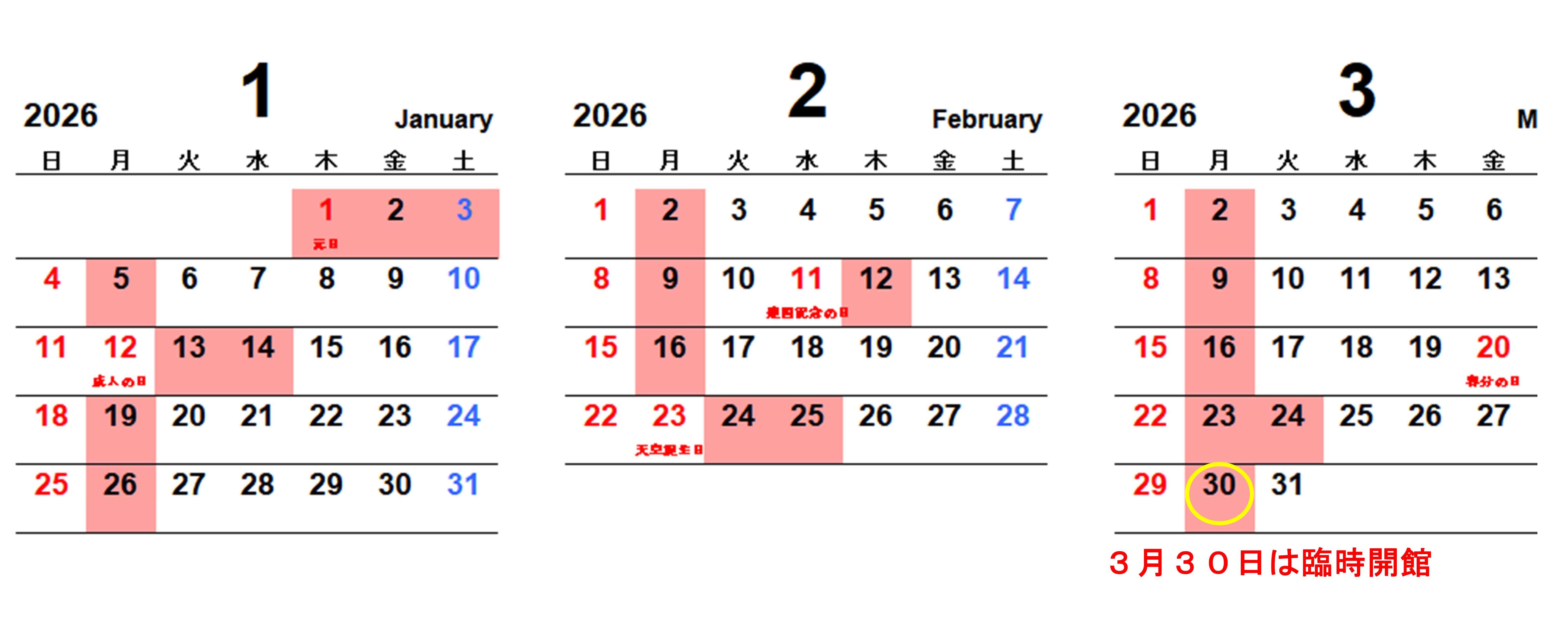 毎週月曜日、祝日の翌日、12月29日~1月3日、その他